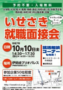 10月10日いせさき就職面接会に参加いたします。新卒、第二新卒の方で当社に興味あるかたはブースにぜひお越しください。